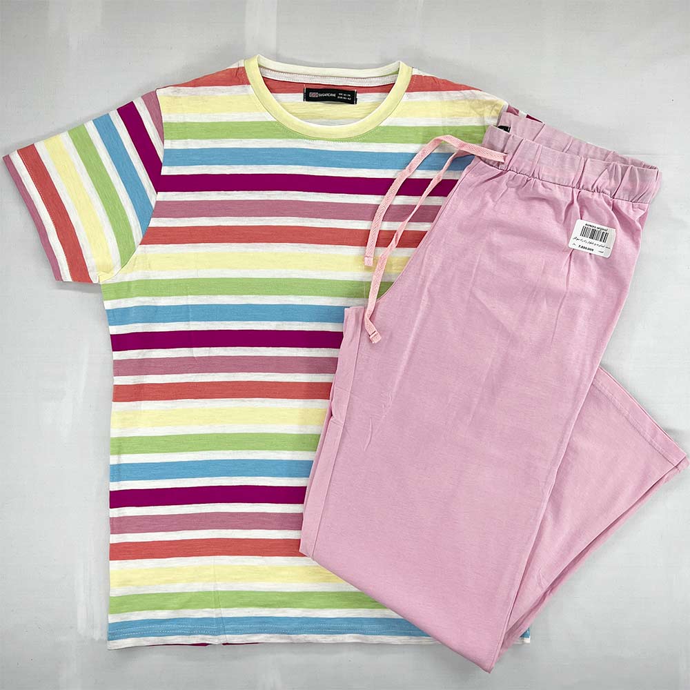 ست تیشرت و شلوار راه راه سوگار صورتی پاستیلی