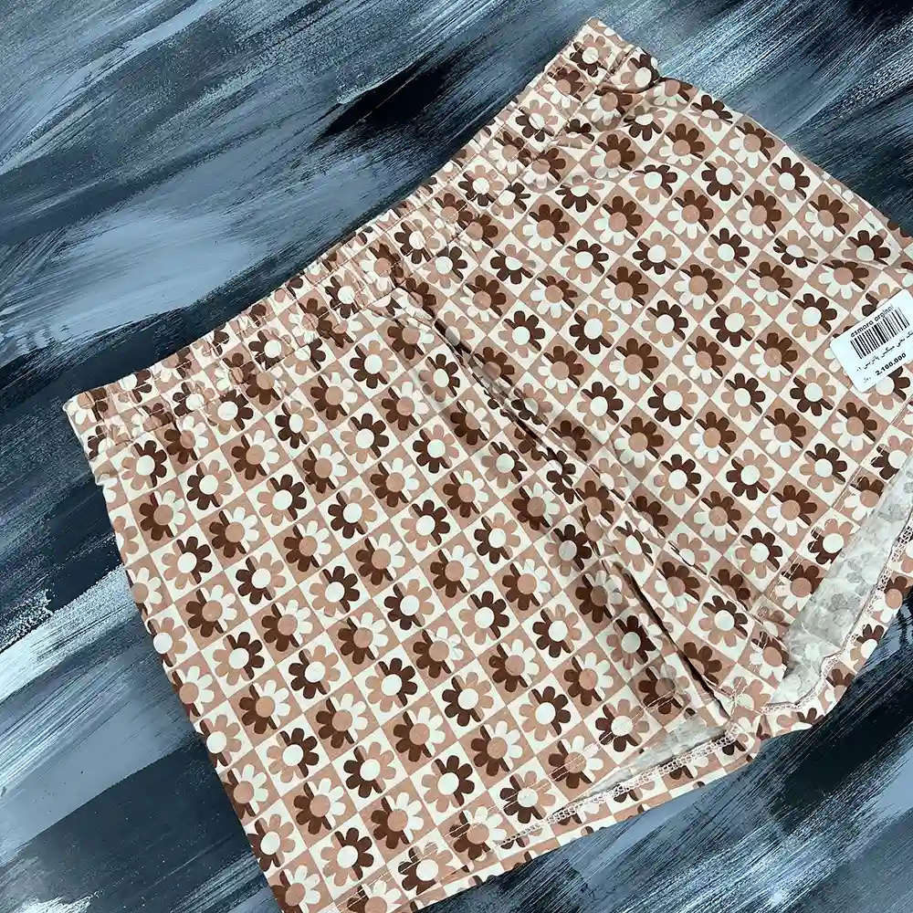 شورتک نخ پنبه مدل گلگلی قهوه ای مدل 01